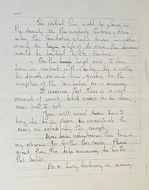 For many years Father Reymann had considered some sort of foundation to enable him to dispose of his estate to a worthwhile cause. Though having these thoughts, he had never followed through until approached by Sonny and Chuck regarding creating a foundation to perpetuate the ideas that Charles and Salome had stood for during their lives.